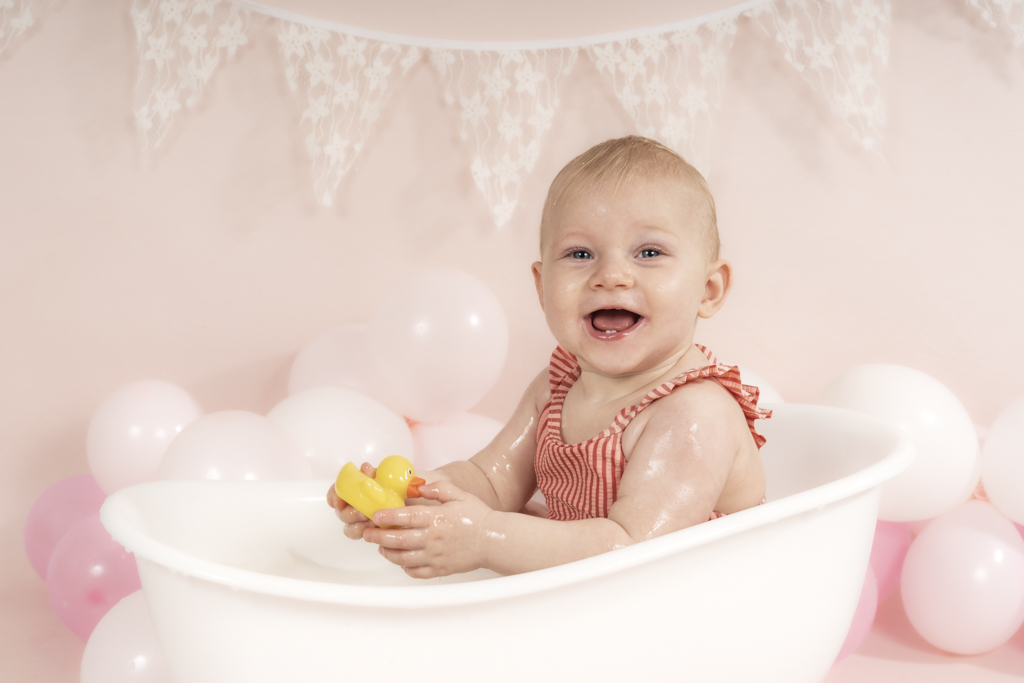 De Cakesmash fotosessie wordt afgesloten met een korte badsessie. Heerlijk spetteren en spatteren in het water en weer fris en schoon mee naar huis. Ook dit moment wordt op de foto gezet.